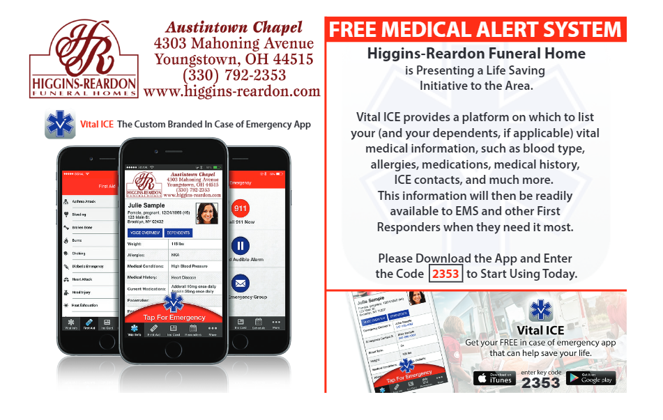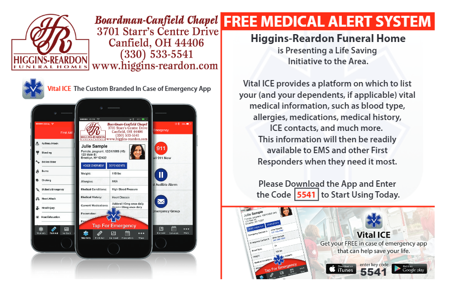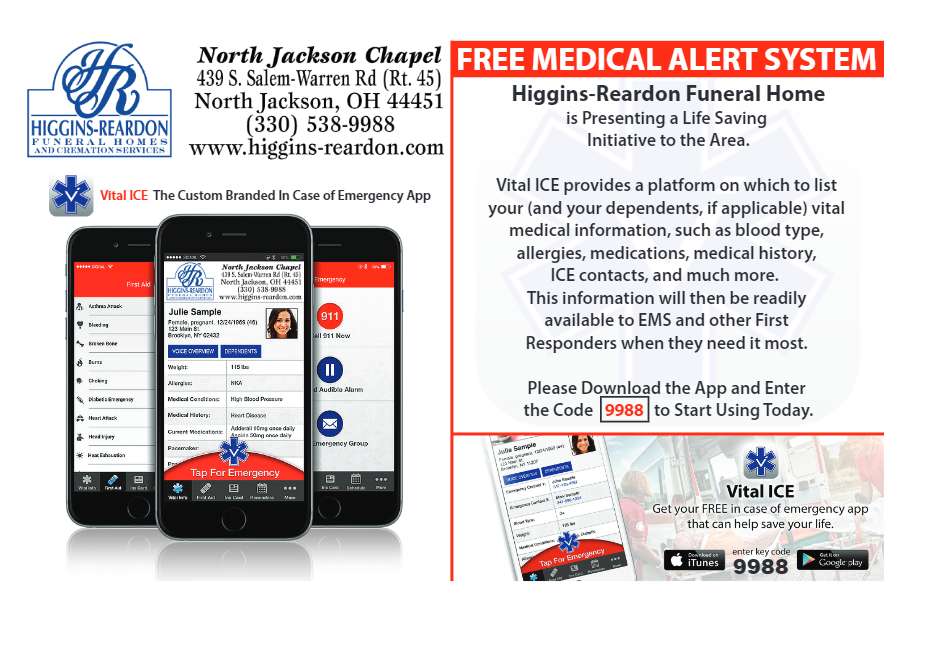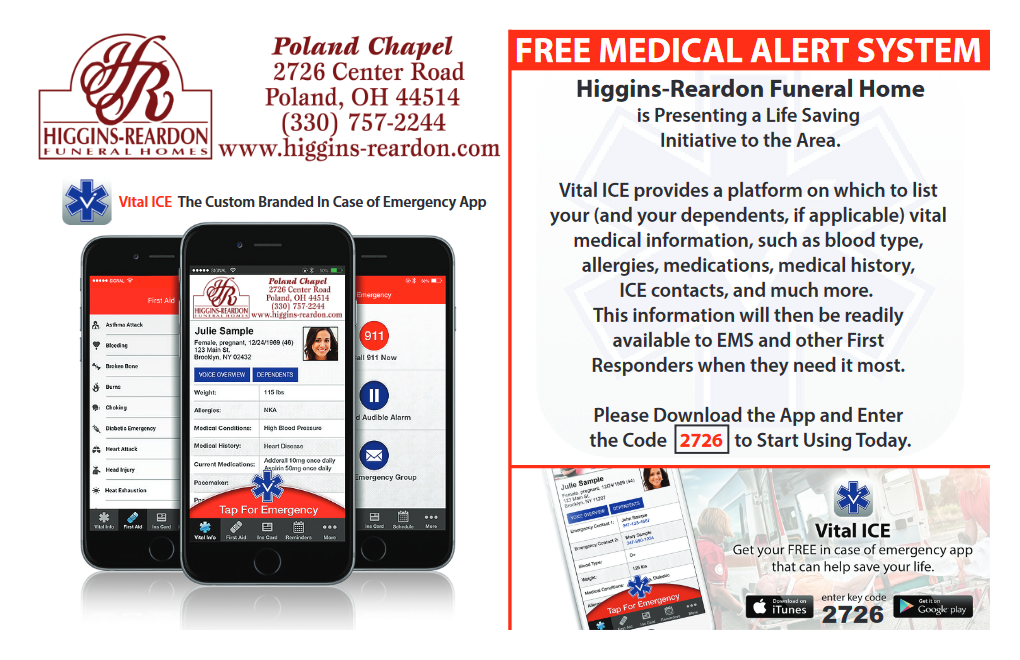 Because of our commitment to our community, we offer a life-saving app: Vital ICE. Free to download, this public safety app locally stores users' medical information, emergency contacts, and more. This information can be easily accessed in situations when it is needed most.